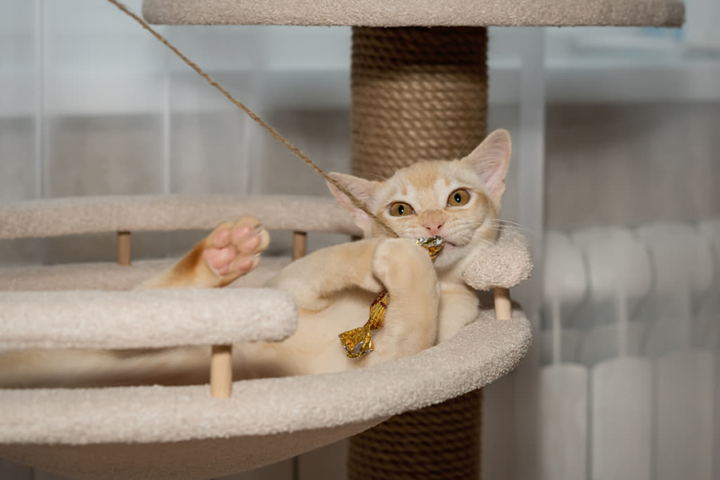 猫の運動不足解消には、キャットタワーの活用が最適です。 猫は高い場所に登ることが大好きなので、キャットタワーがあれば上下運動ができて運動不足やストレスの解消に効果的です。 またキャットタワーには隠れ家や爪とぎがついているものも多いので、猫の本能を満たしながら遊ばせることができますよ。