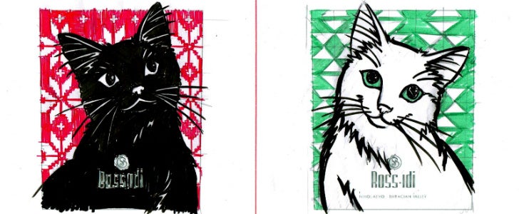 ■猫好きの彼女が、昨年マクアケでバラワインをリリースして好評だったブルガリアの新進気鋭のワイナリー・ロシディとコラボして、切絵でネコワインラベルを作りました。