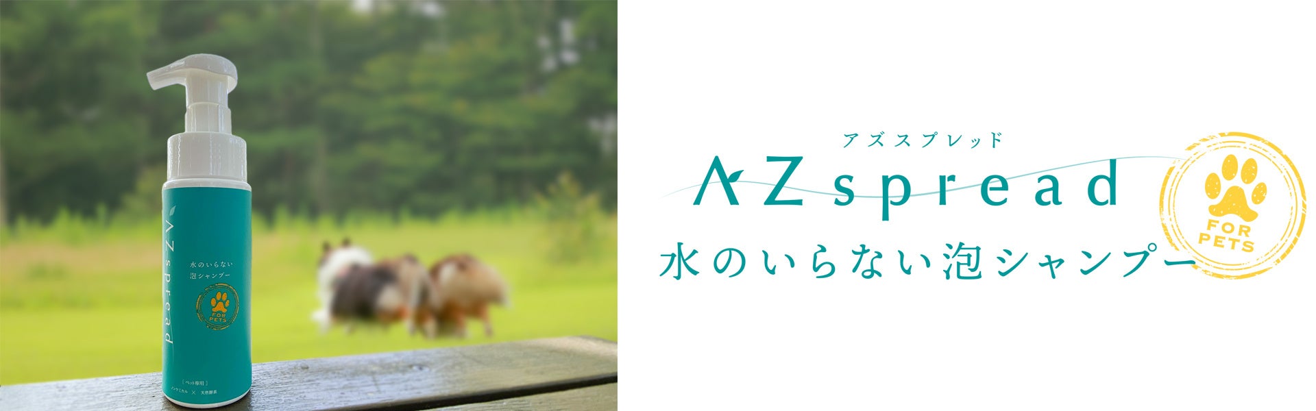 AZseed Japan株式会社は植物由来の天然酵素群と海洋深層水だけで作る洗浄剤アズスプレッドシリーズから、初のペット用品、「アズスプレッド 水のいらない泡シャンプー ペット専用」を発売しました。
