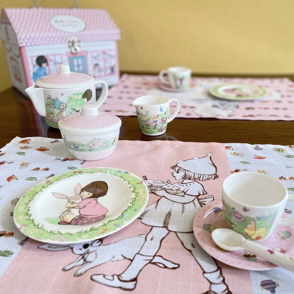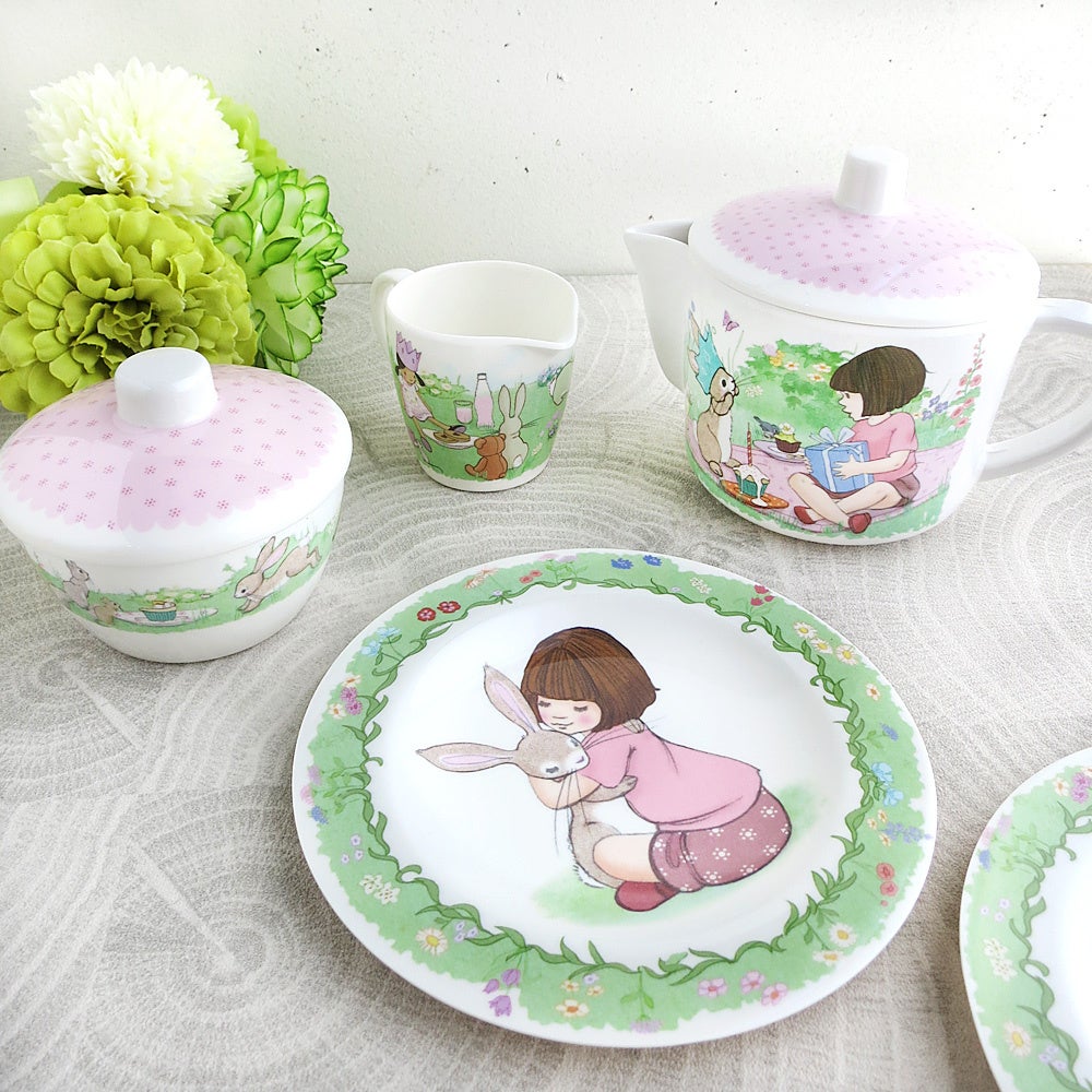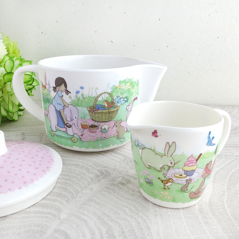 メラミン製のティーポットやシュガーボウル、ミルクジャグも絵本の世界そのままで、洗って何度でもお使いいただけます。