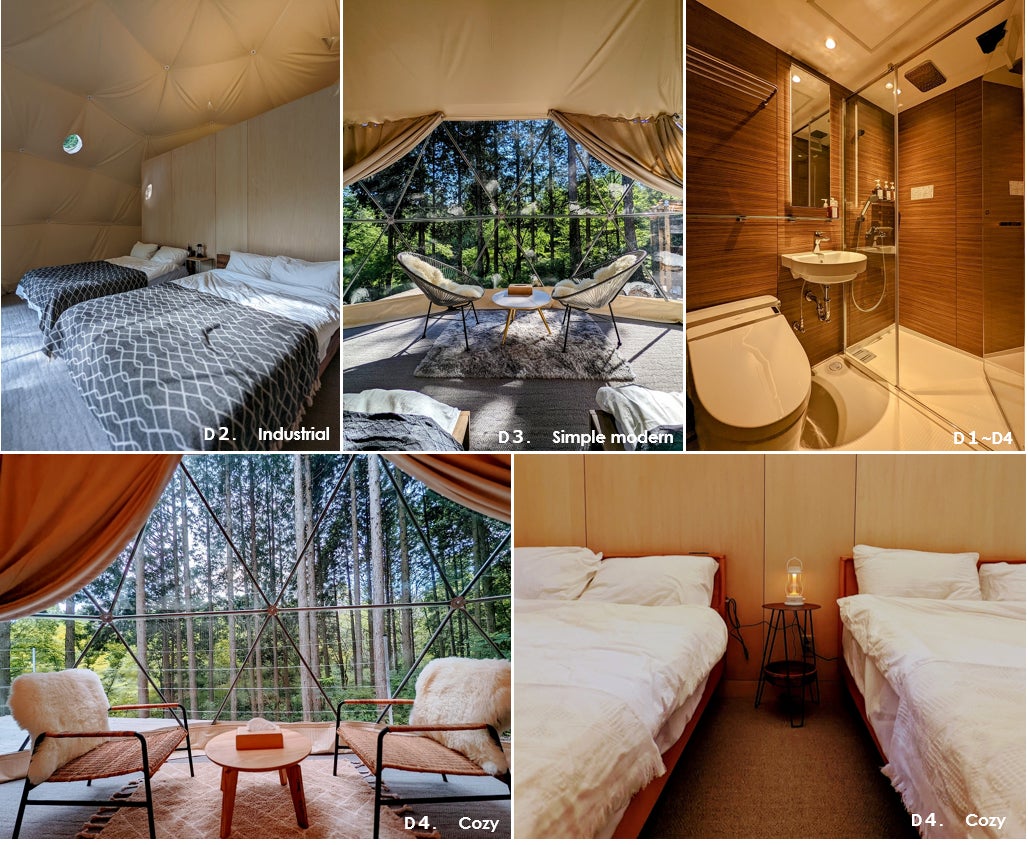 同エリアには、FDomesのドームテントを使用しており、各室異なるコンセプトでセレクトしたインテリアでぜいたくな空間を楽しめます。